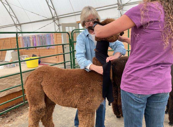 Mit der Bandage können den gestressten Tieren positive Erfahrungen mitgegeben werden. *Anleitung im Buch "Das Kameliden-Kompendium" (Art. Nr. SW10113)